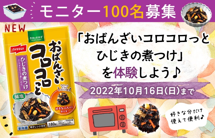 ■「おばんざいコロコロっと ひじきの煮つけ」をお試しいただき、『体験後アンケート』に回答できる方。