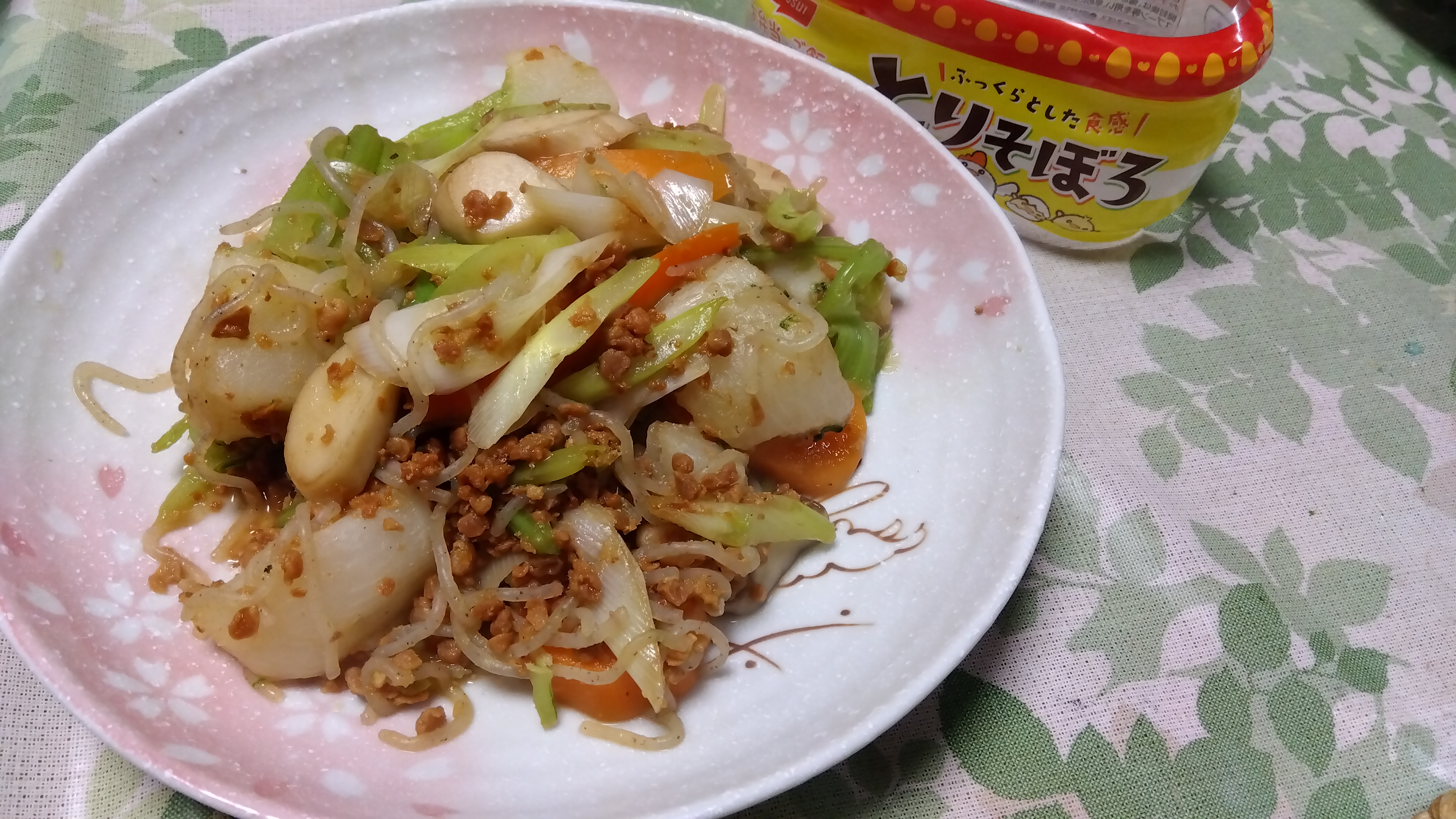 とりそぼろが好きなのでカブで炒め煮にしました☆
