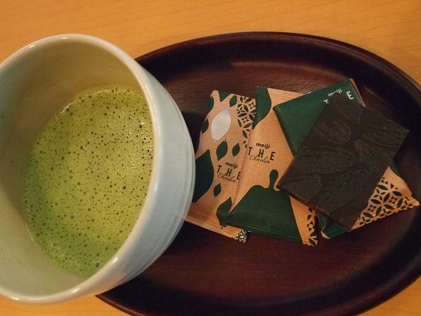 抹茶を点てて魅惑の旨味・抹茶を頂きました。甘い和菓子と違ってビターなお味が何とも渋い抹茶に良く合っていました。やみつきになりました。