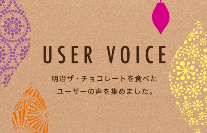 明治ザ・チョコレートのブランドサイト内で、 明治ザ・チョコレートコミュニティの投稿をページ別に紹介するページがオープン「ユーザーボイス」ページとしてブランドサイトでも掲載されました