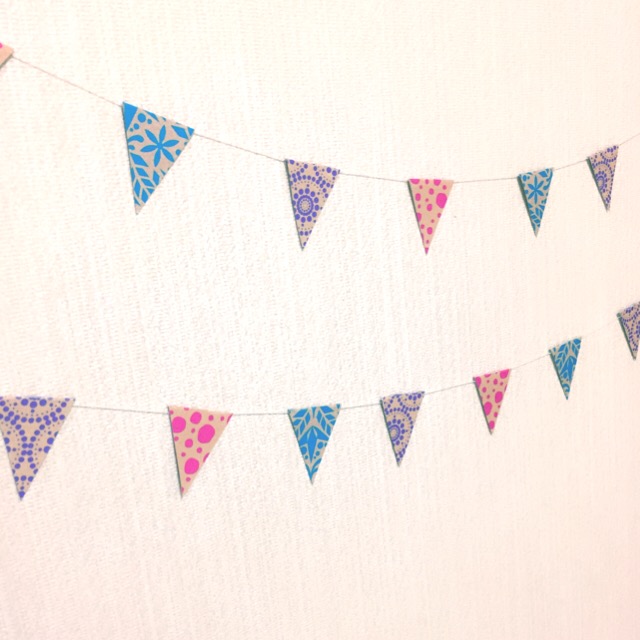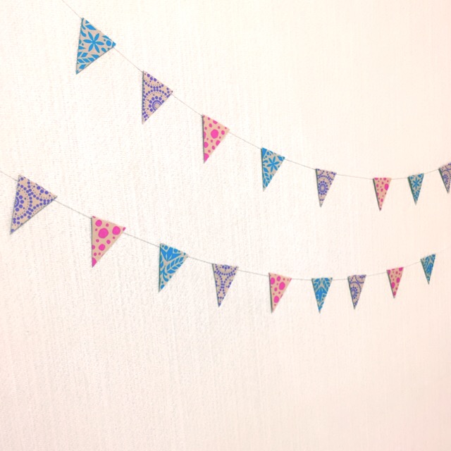 私は簡単に定規で線を引いて三角のフラグ型ガーランドにしました(*´∀`*)