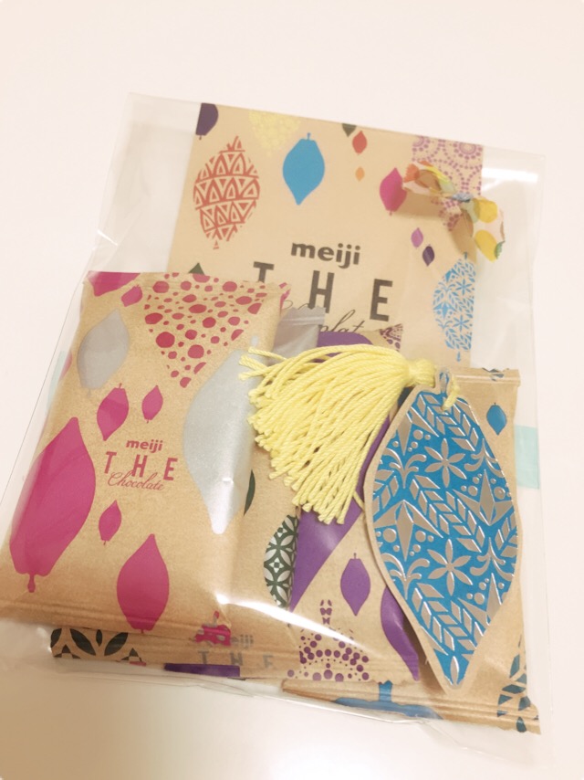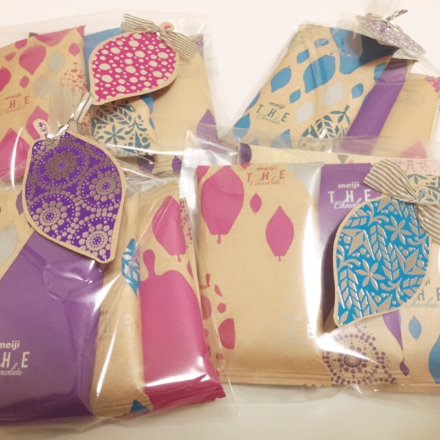 これをやったらメッセージタグがオシャレでTHE CHOCOLATEを配るのにぴったりでいいなと思って他の友人のラッピングも、家にあるシンプルなビニール袋でこんな感じになりました♡