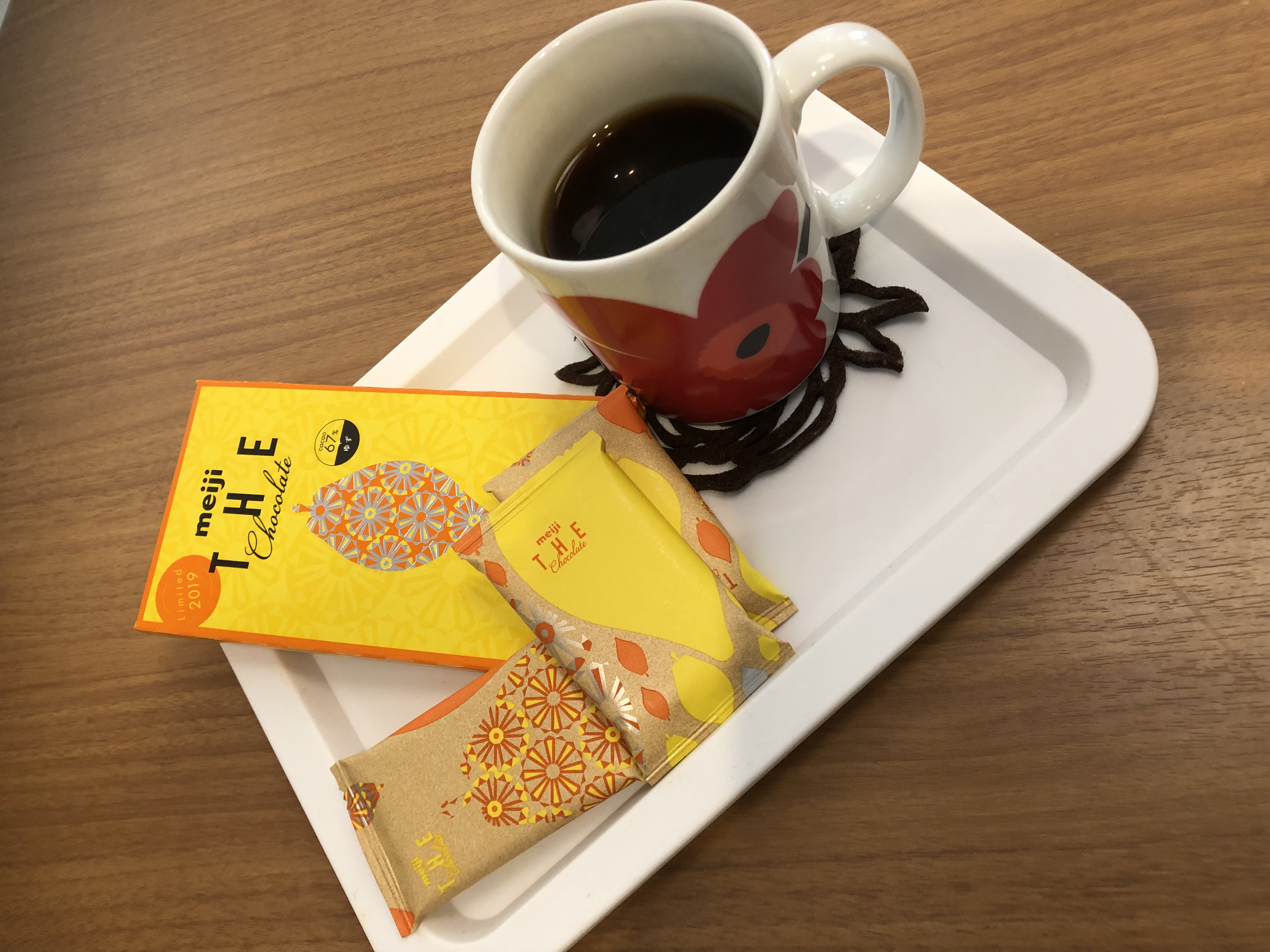 3時のおやつに明治ザ・チョコレートの新フレーバーの柚子と、ブラックコーヒーでいただきました!柚子感めっちゃありました、びっくりするくらい!私は…残念ながら好みの味では無かったです。柚子の酸味や苦味が結構強く感じるので、チョコがもう少し甘めが良いかなと思いました。ブラックコーヒーより、カフェラテや紅茶が欲しくなりました。