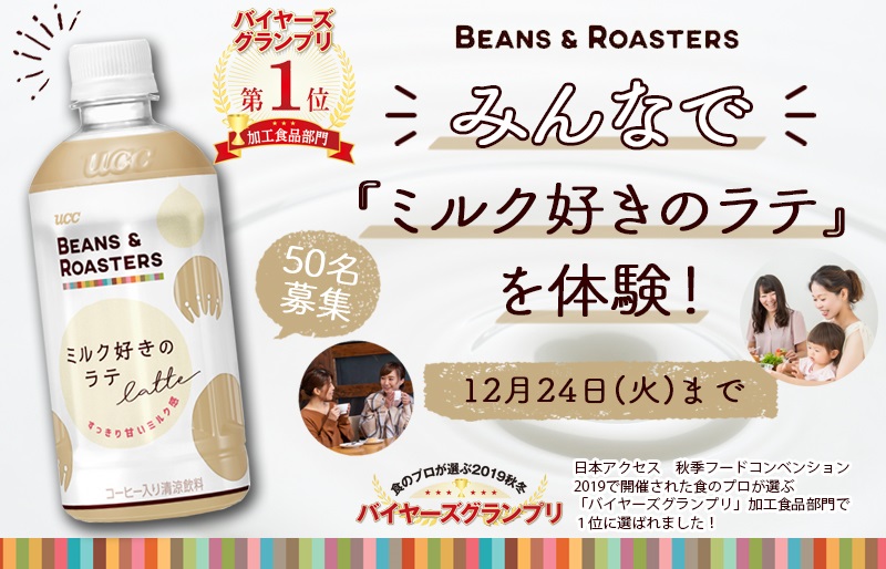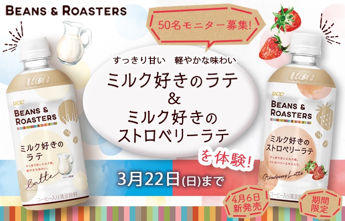 モニター募集は終了しました。 たくさんのご応募ありがとうございました。 --*--*--*--* 牛乳を贅沢に使用し、挽きたてのコーヒーがほんのり香るすっきり甘い、新しい味わいのラテを試してみませんか♪ 「BEANS & ROA...