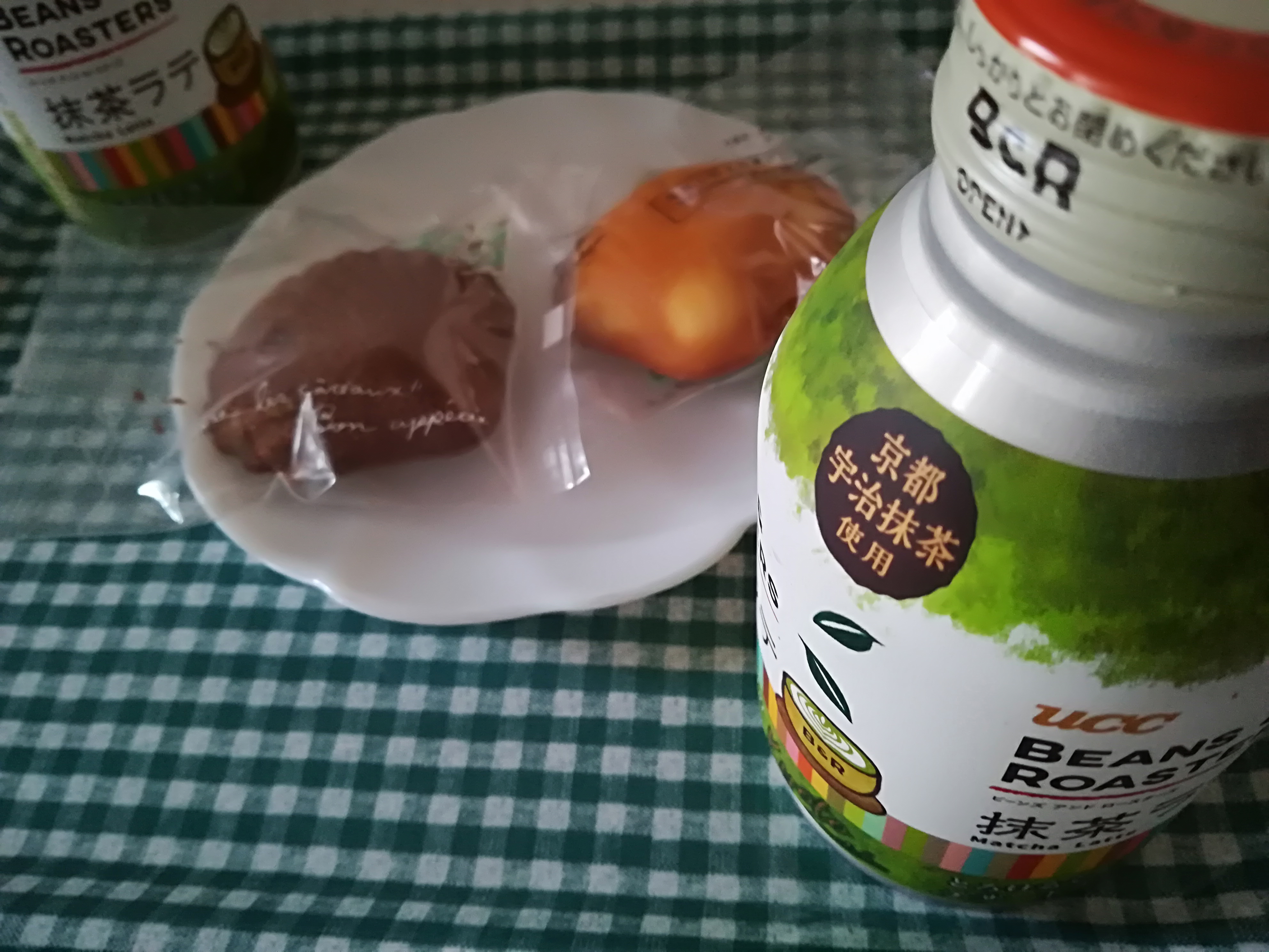 お友達と抹茶ラテとマドレーヌでティータイム、いいですね。