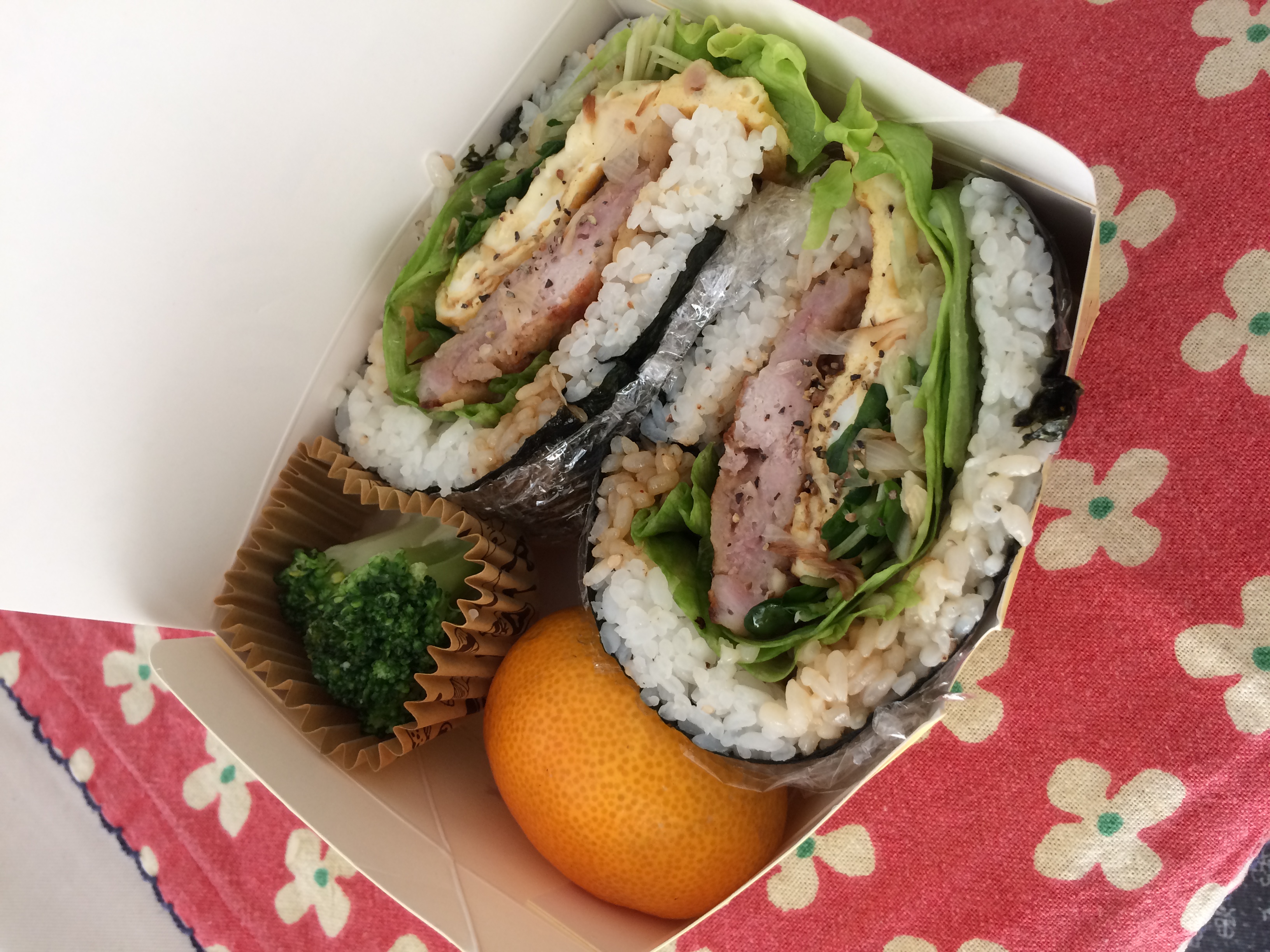 具材を冷ましたら 焼肉のたれで味付けをし、 準備しておいた海苔とご飯に 挟んでおしまい!