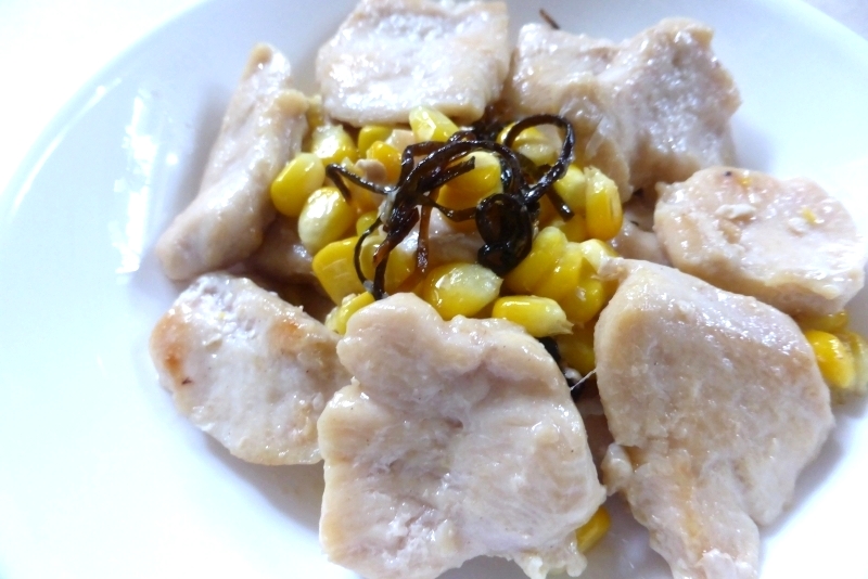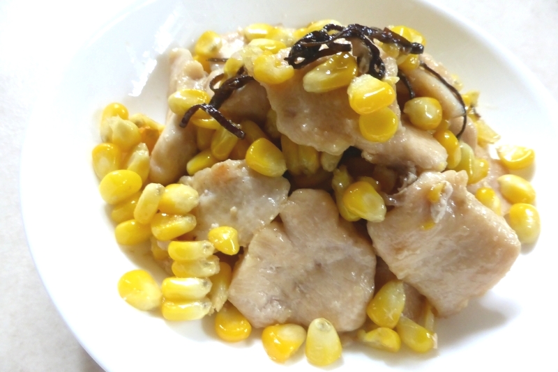 「お肉やわらかの素」を使えば、パサツキがちな鶏むね肉も簡単にしっとりしたチキンソテーが出来ます!火加減も大切。強火ではなく中火~弱火でじっくりソテーします。甘い旬のとうもろこしと味のアクセントになる塩昆布の甘辛さが美味しいバターソテーです。しっかり味なのでごはんも進みます♪
